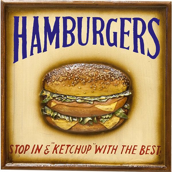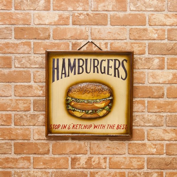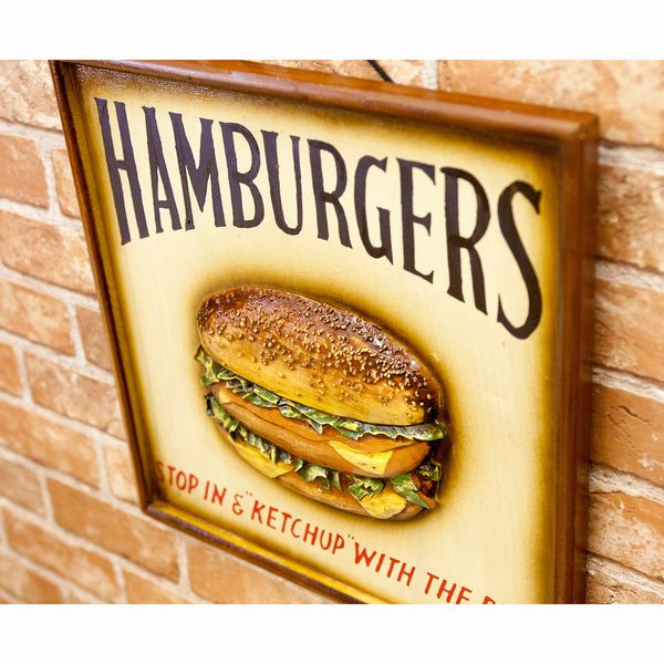 レリーフ アート ウォールデコレーション 家具 インテリア アンティーク アイテム ボード ハンバーガー アメリカン雑貨 木製プレート 【送料無料】