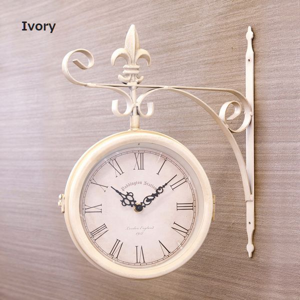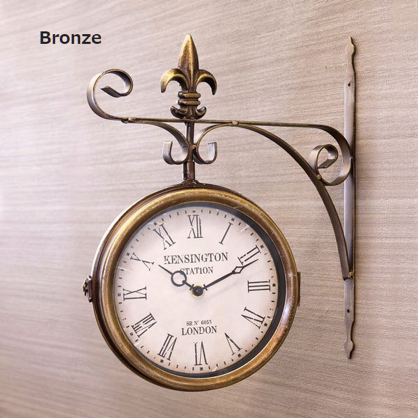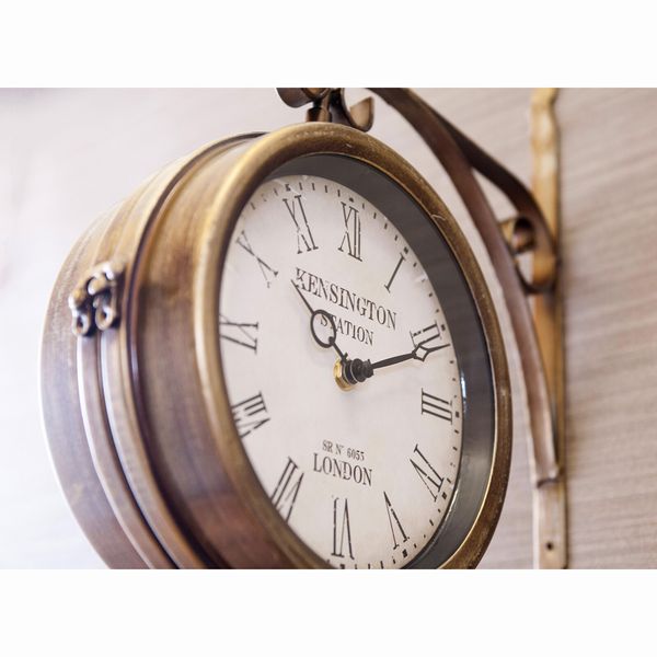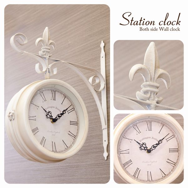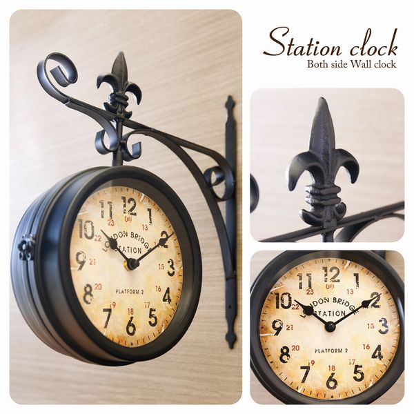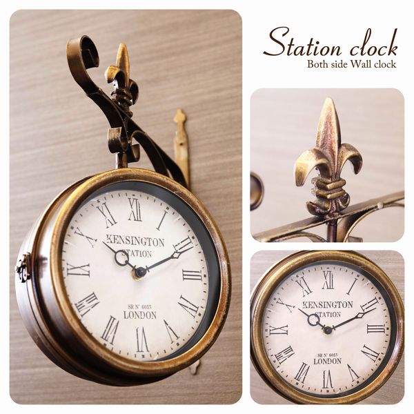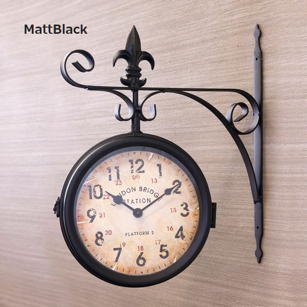 海外の駅で見かけそうなおしゃれな壁掛両面時計です。
