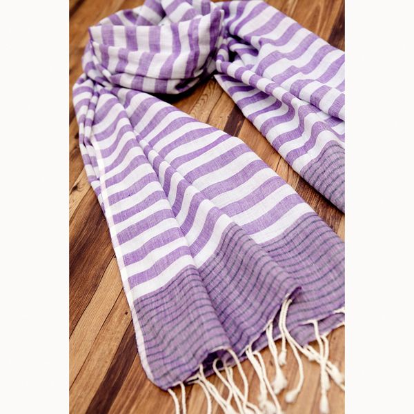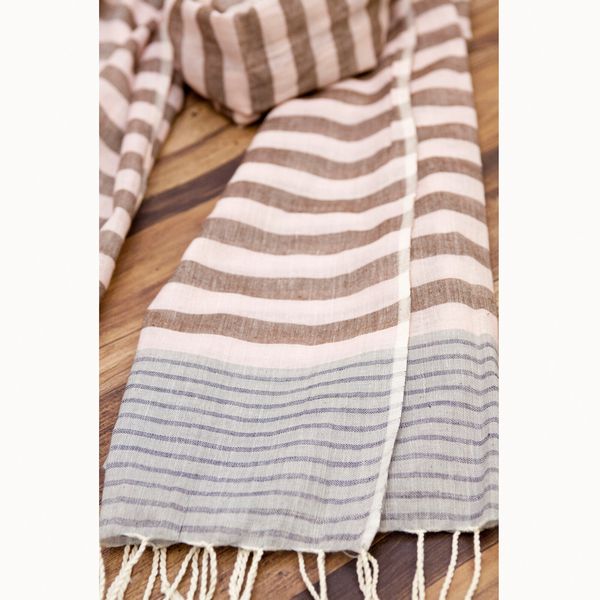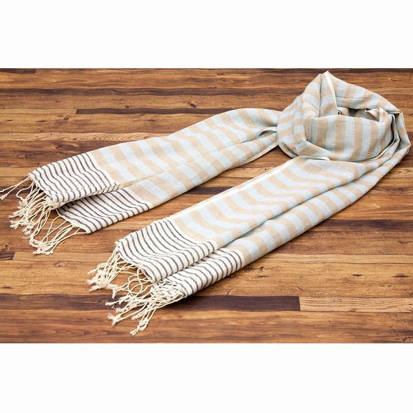 | コットンの優しい肌触りのボーダーストールです。 首元を柔らかく包んでくれます。 |