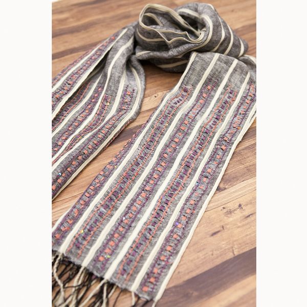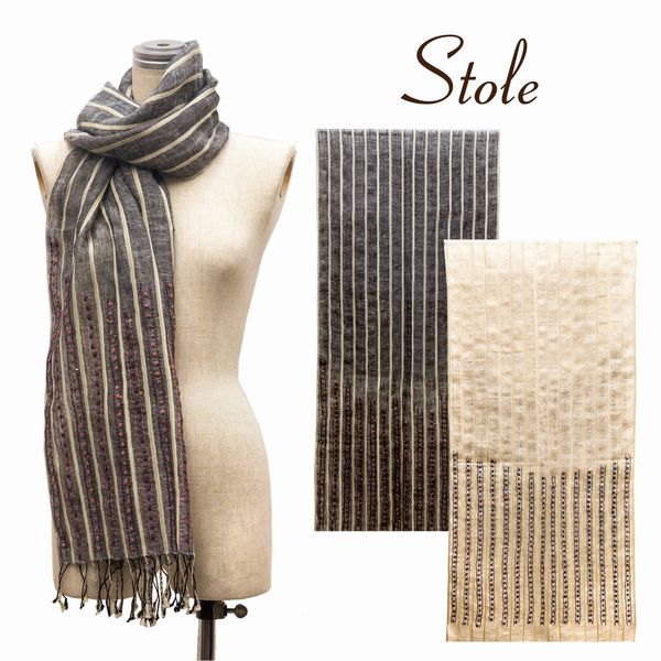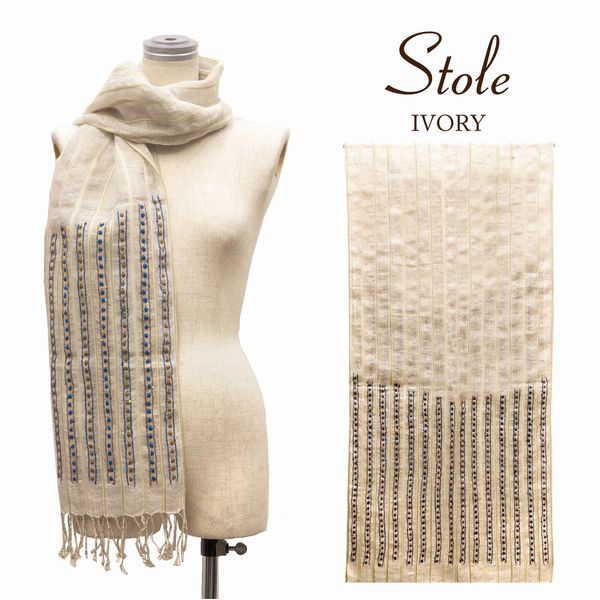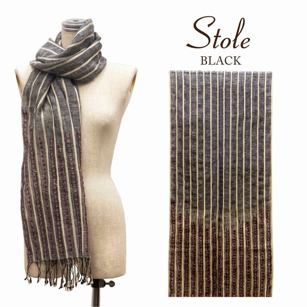 コットンの優しい肌触りと刺繍入りラインスパンコールストールです。