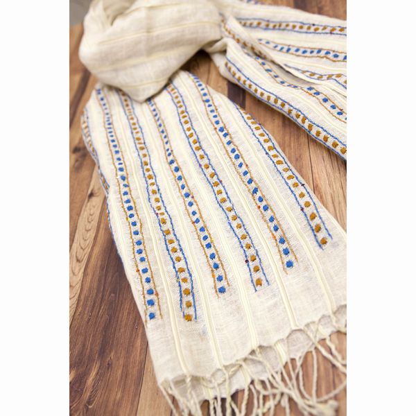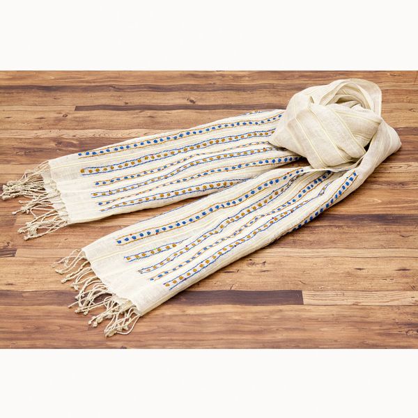 | コットンの優しい肌触りと刺繍入りラインスパンコールストールです。 首元を柔らかく包んでくれます。 |