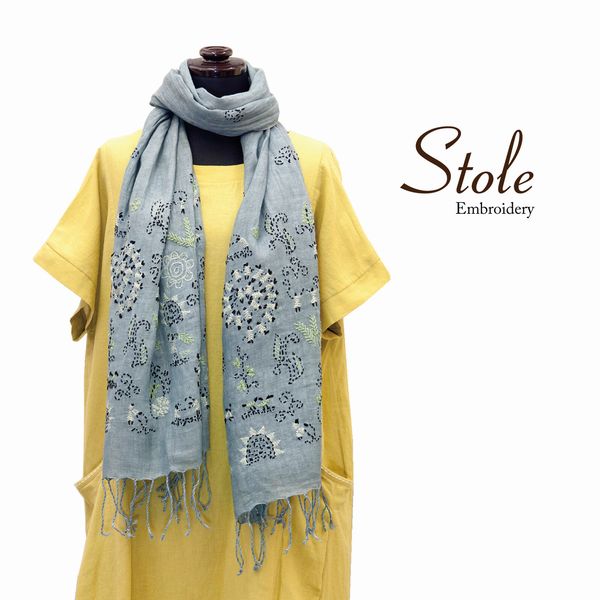 ストール ファッション小物 レディースファッション 薄手 刺繍ストール 収穫祭 刺繍 物語の一部の様 優しい色味 落ち着いた雰囲気 【送料無料】