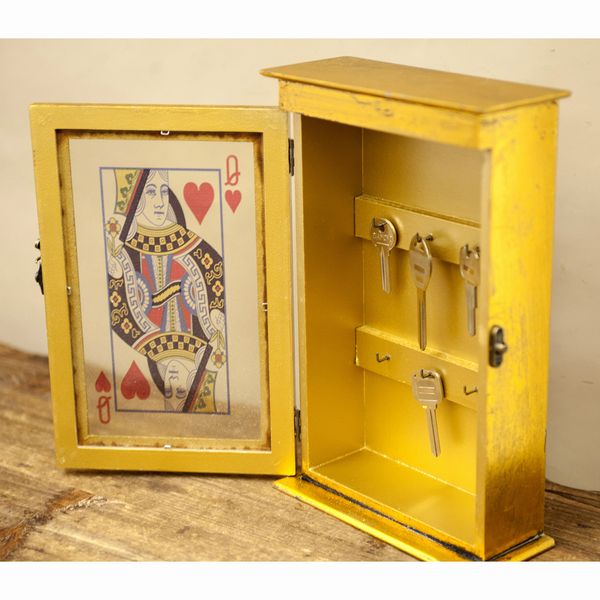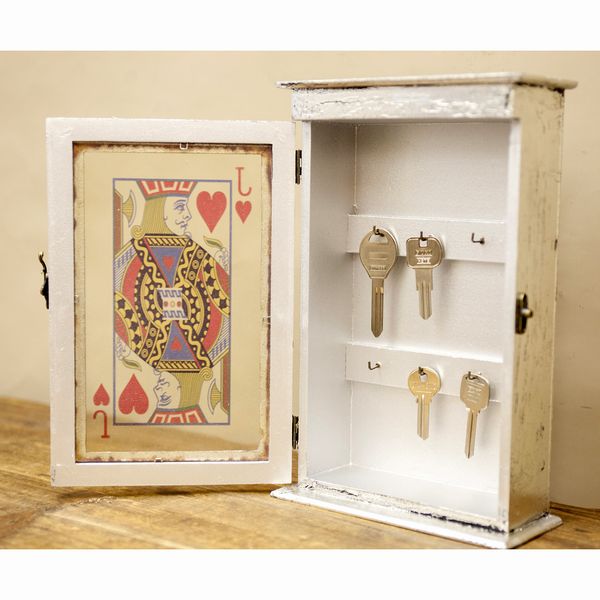 | トランプのジャック、クイーン、キングをモチーフとしたオシャレなボックスです。 フックが6つ付いており、壁にかけて飾ることができます。 シークレットブックやロココ調の家具など、アンティーク風のお部屋にオススメです。 |