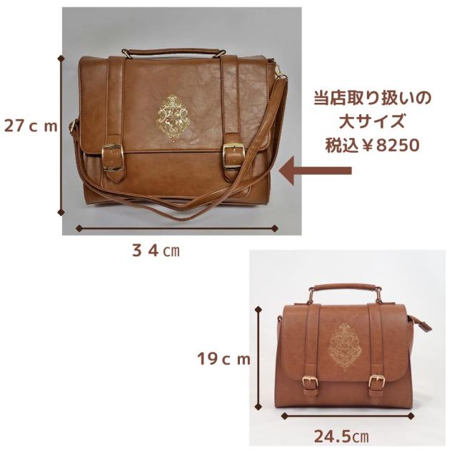 ホグワーツ魔法学校のエンブレムが ポイントのサッチェルバッグです。