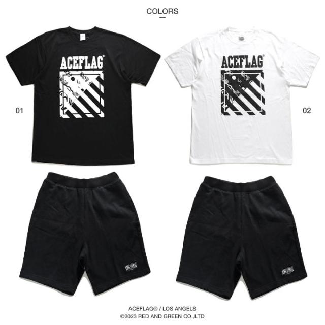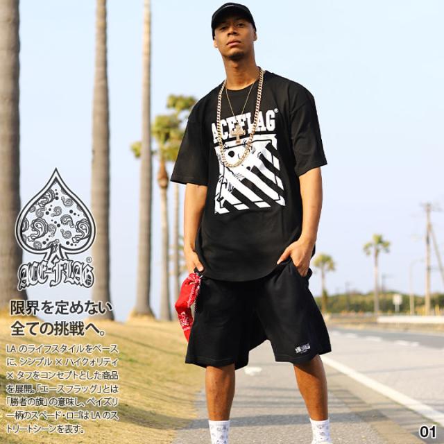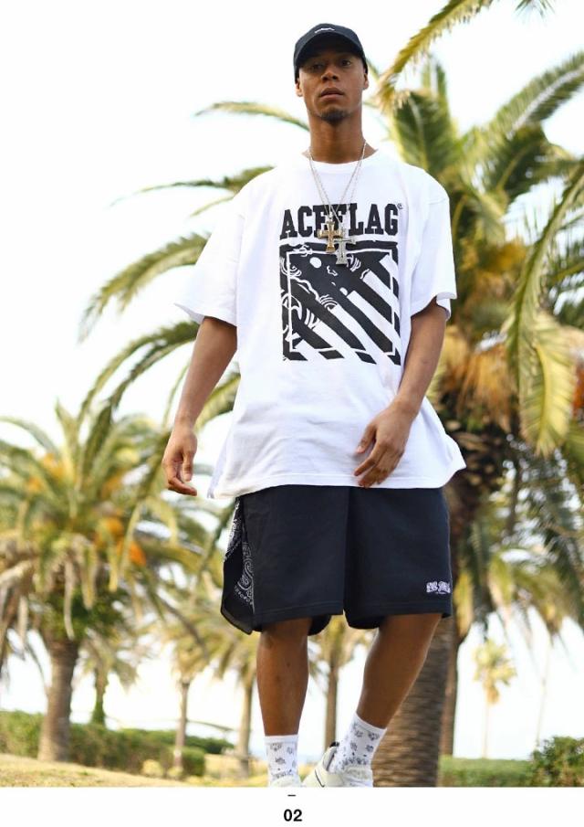 【43%OFF】ACEFLAG 上下セット 半袖 ブランド Tシャツ ハーフパンツ メンズ 黒/白 大きいサイズ エースフラッグ セットアップ シンプル ペイズリー柄 バンダナ柄 b系 ヒップホップ ファッション AF-SE-TS-017