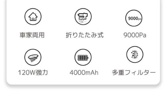 9000pa強力な吸引力で様々なほこり、細かい屑などを一瞬に吸い取れます。