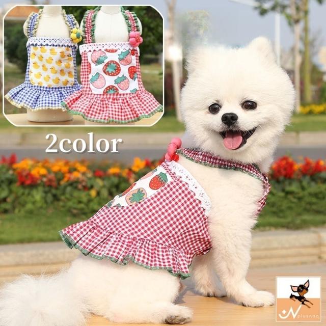 ドッグウェア キャミソールワンピース 犬服 猫服 ペット用品 キャット 小型犬 ノースリーブ 袖なし ボタン 前開き チェック柄