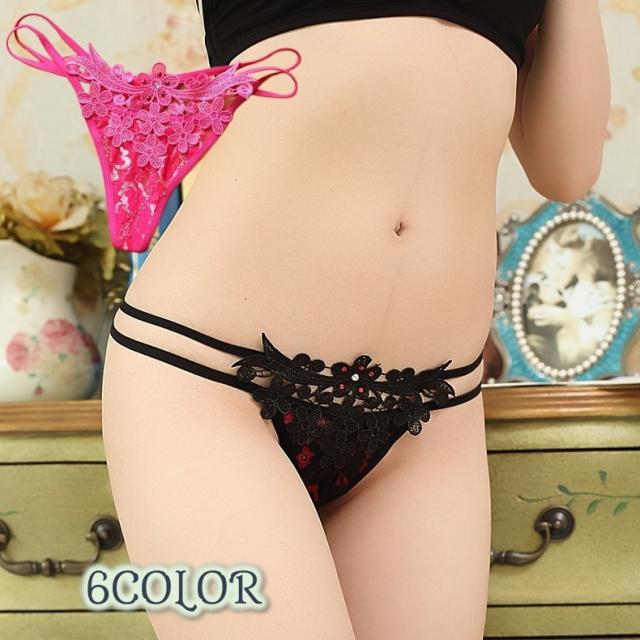 フラワーのレース使いが華やかなレディースTバックショーツ。