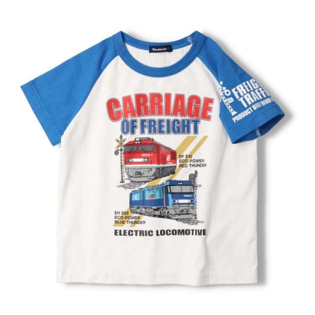 男の子が大好きな電車!人気の貨物列車シリーズ。貨物列車をけん引している機関車のレッドサンダー、ブルーサンダーのリアルな車体のプリント入り。袖にもロゴと踏切のプリント入り。ラグランデザインの半袖Tシャツ。(ベビーサイズのみ肩ボタン仕様になります。)【アイテム】半袖 トップス カジュアル お洒落 オシャレ かっこいい かわいい 可愛い 普段着 デイリーウェア お出かけ着 お外遊び着 子ども こども 男児 男の子 ボーイズ キッズ ベビーサイズ トドラーサイズ 幼稚園 保育園 小学校 通園 通学 小学生 2023年夏物新作 丸高衣料 鉄道 子鉄 車両 電車 電鉄 トレイン ブルー 青色 レッド 赤色 ホワイト 白色 踏切 線路 信号機 ムージョンジョン コットン100% 綿100%