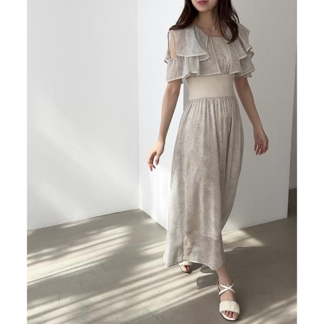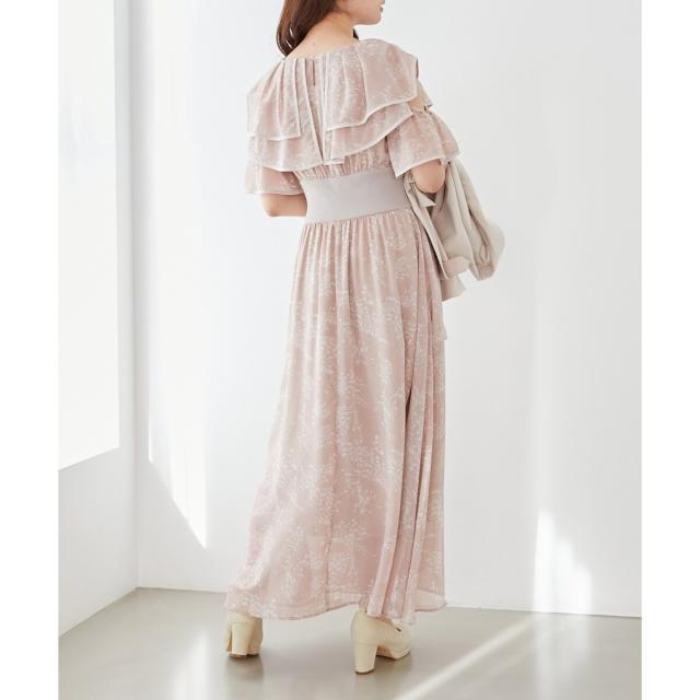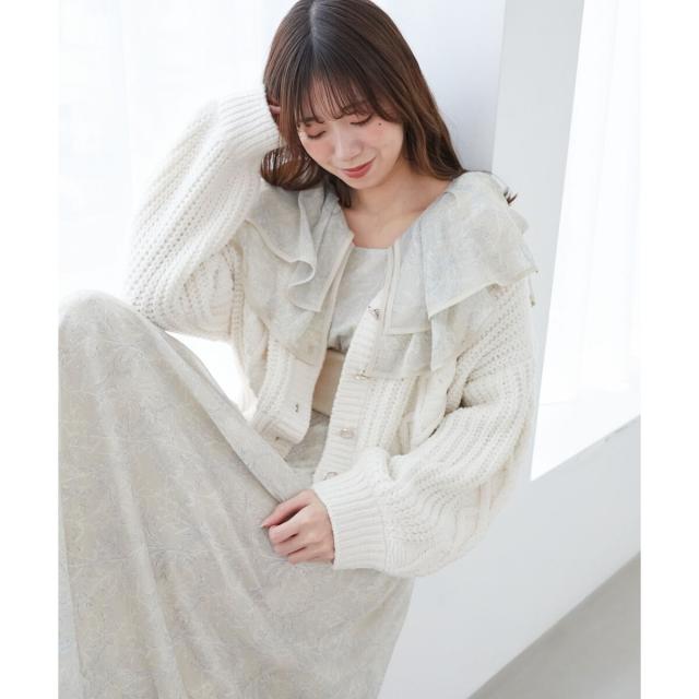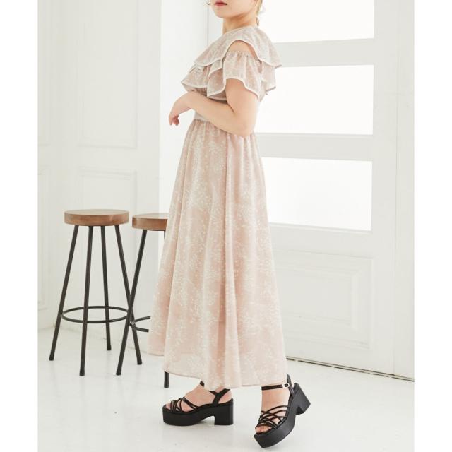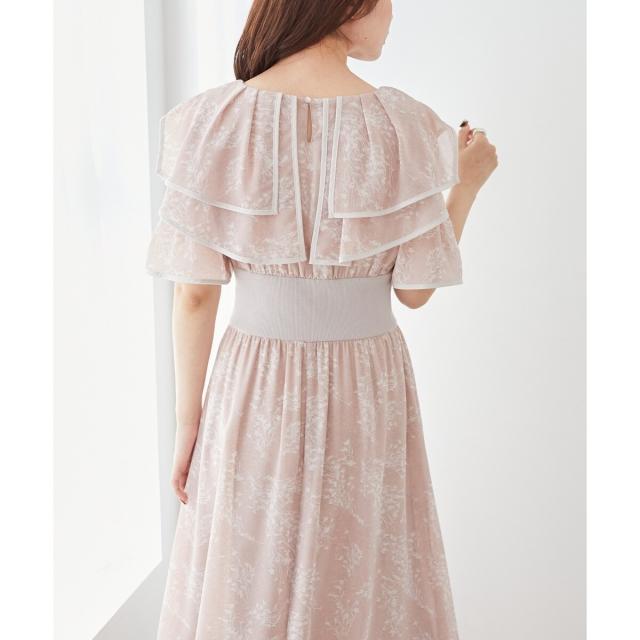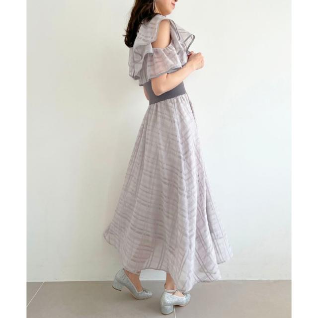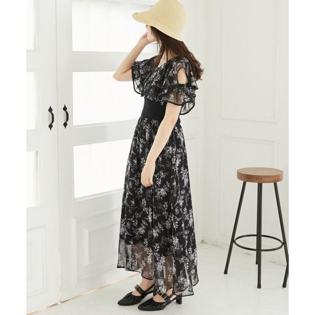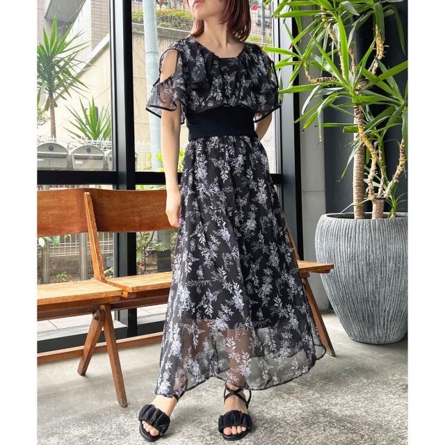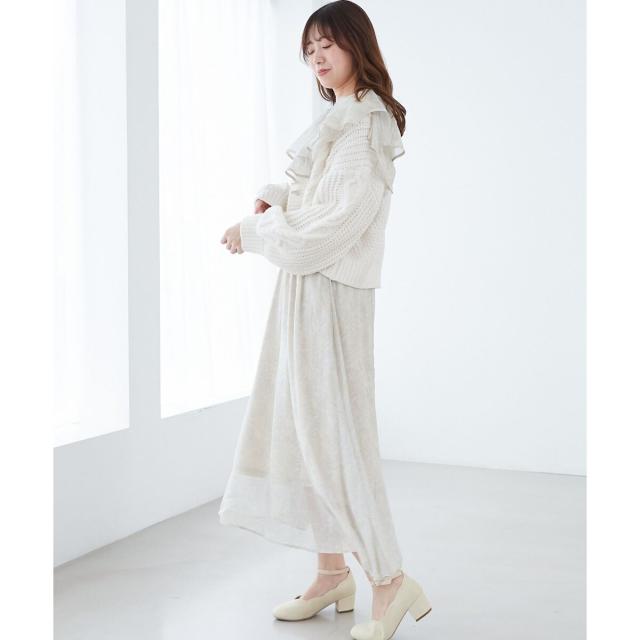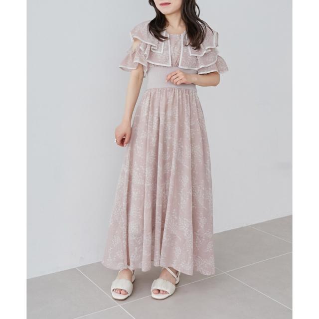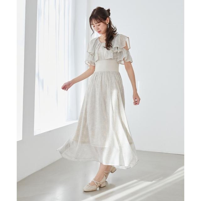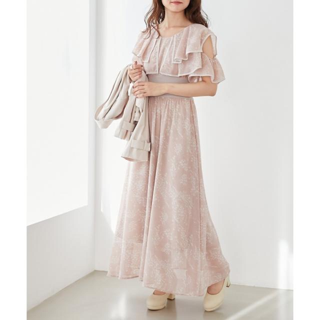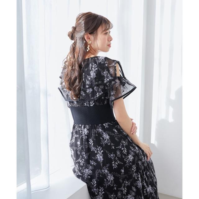 大きなフリルから覗くデコルテラインと肩の肌みせが大人あざとさを演出。