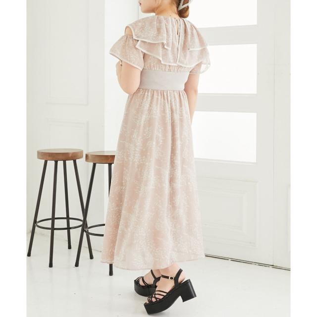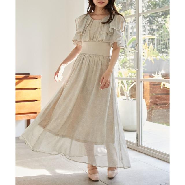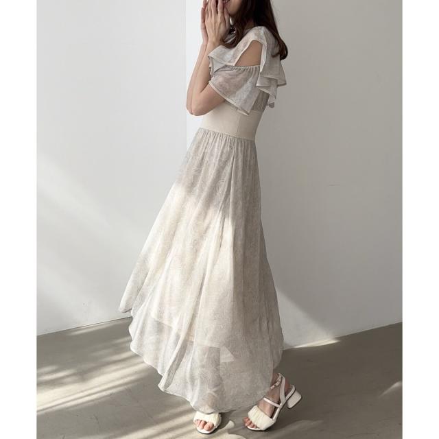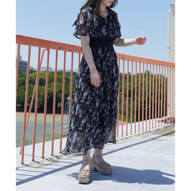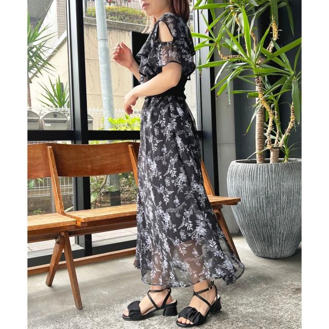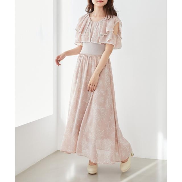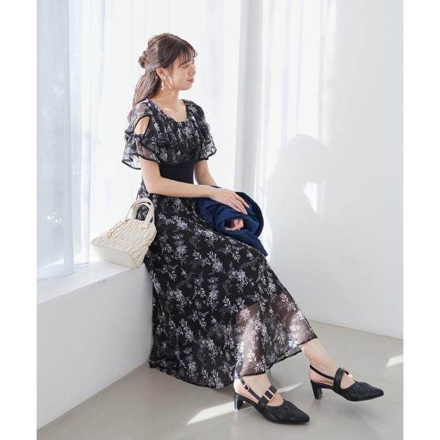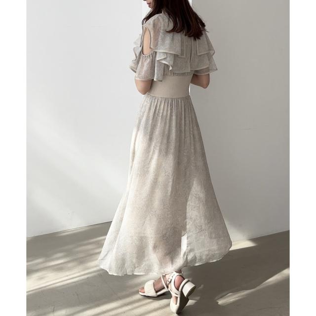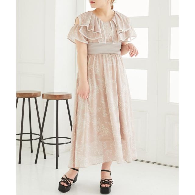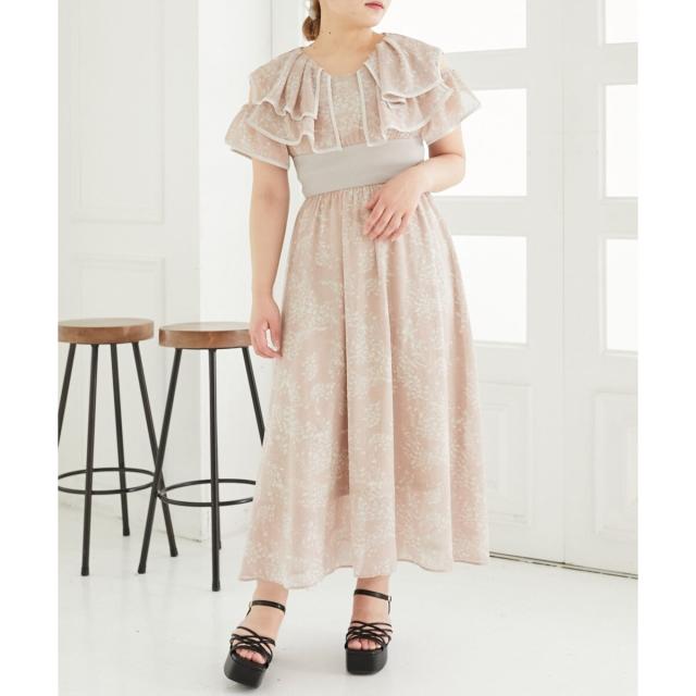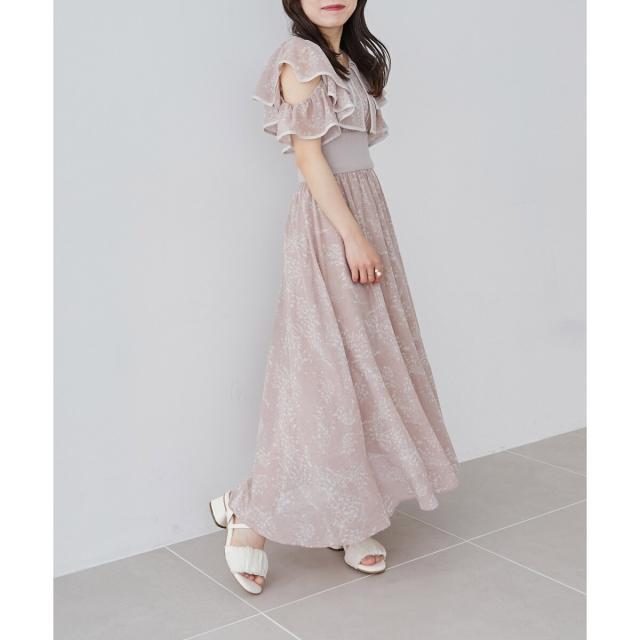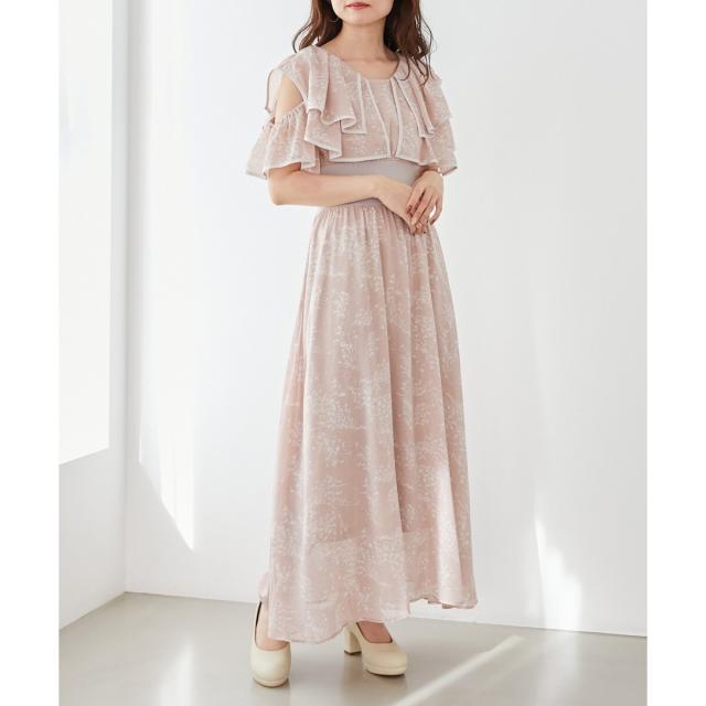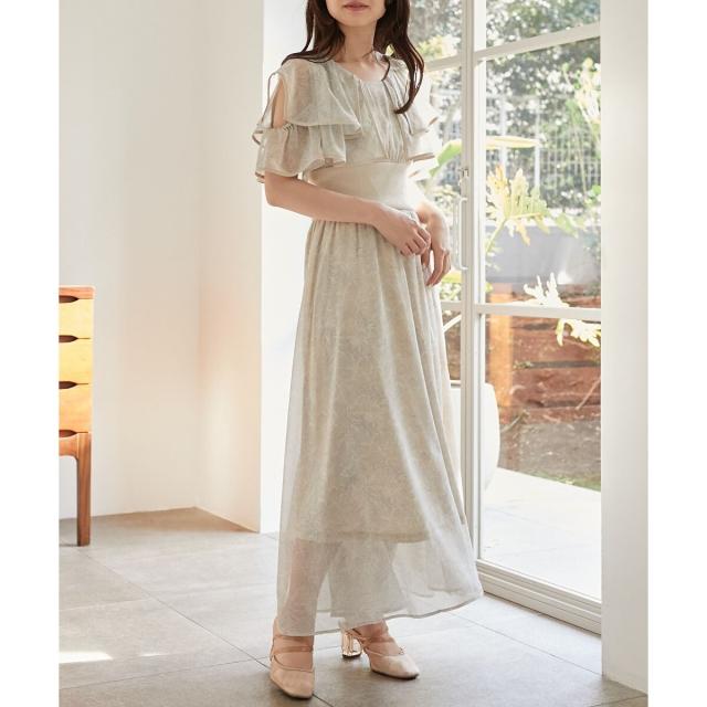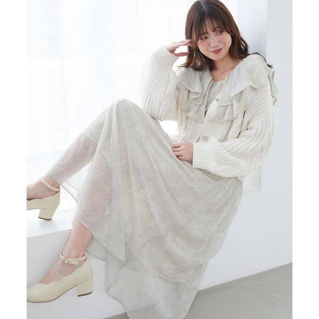大きなフリルから覗くデコルテラインと肩の肌みせが大人あざとさを演出。