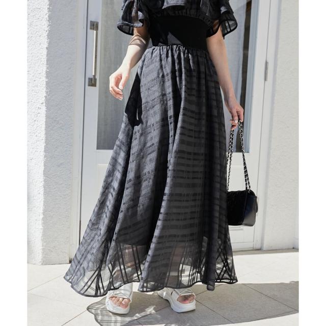 ウエストのコルセット部分はリブなので窮屈感なくスタイルアップ見えが叶います。