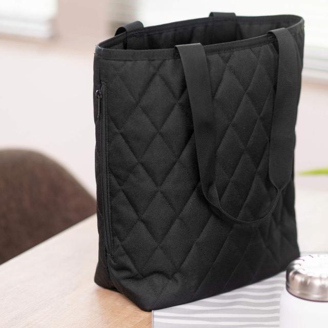 ダイヤモンド技法が施された立体的なキルティングデザインが特徴のトートバッグです。異なる生地層で構成されていて、一目見ただけでその品質の高さがわかります。オンでもオフでも使える実用的なバッグです。