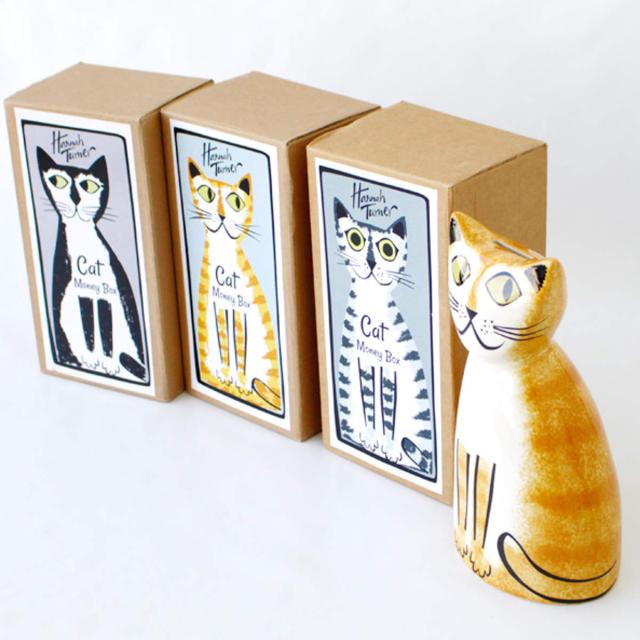 貯金箱 Hannah Turner Money box Cat ネコ ( ハンナターナー マネーボックス コイン マネーバンク 500円玉 貯まる コイン入れ 500円玉貯金 置物 陶器 猫 オブジェ 雑貨 ゴム栓付き 硬貨 アニマル グッズ おしゃれ かわいい ねこ )