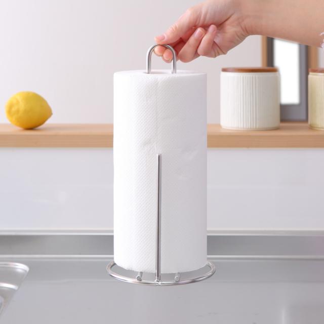オールステンレス製でスッキリとした印象のキッチンペーパーホルダーです。ただ立てていると生活感のあるキッチンペーパーも、スタンドを変えるだけでスタイリッシュなインテリアに。