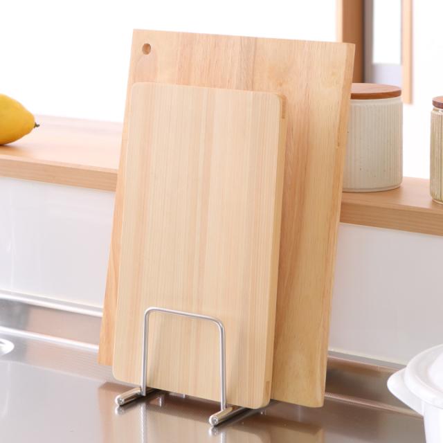 縦置き・横置きどちらにも対応しているまな板スタンドです。シンプルなデザインでキッチンに馴染みやすく、省スペースに収納が可能。作業スペースが広く使えて料理がはかどります。