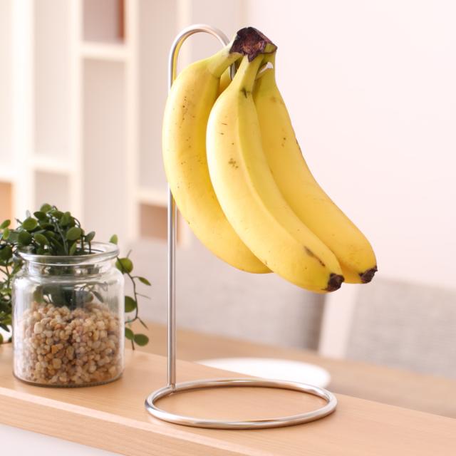 バナナを吊るして保存できるステンレス製のバナナツリーです。直置きすると色の変わりやすいバナナも吊るして保存しておく事で鮮度を長持ちさせられます。