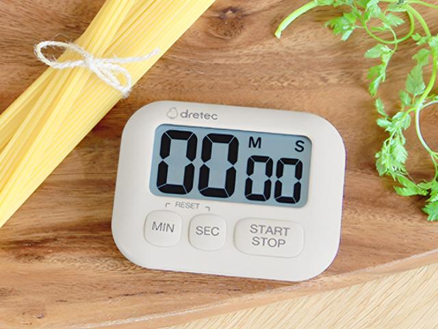 大きい画面と太い文字で表示が見やすいキッチンタイマーです。離れた場所でも残り時間を確認しやすいので便利です。