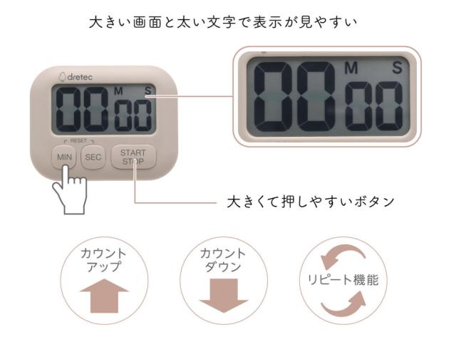 キッチンタイマー ポポラ 壁掛け 置き型 ドリテック ( dretec デジタル タイマー マグネット スタンド キッチン 料理 学習 勉強 簡単 シンプル 小さい カウントダウン カウントアップ リピート )