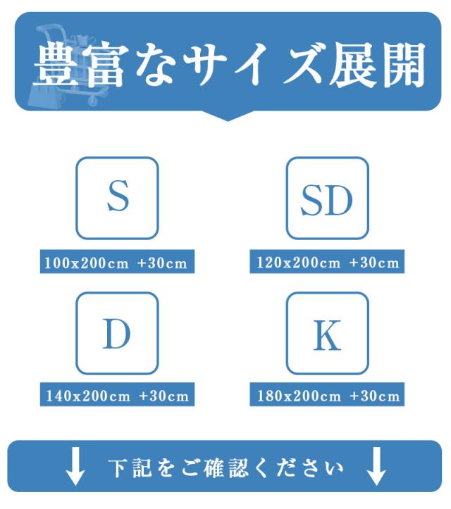 ボックスシーツ(全周ゴム仕様)サイズ:160×200+30cm(厚さ約25cmまで対応できる)生地:ポリエステル100%洗濯可否:ご家庭で丸洗いOK製造:日本企画・中国製