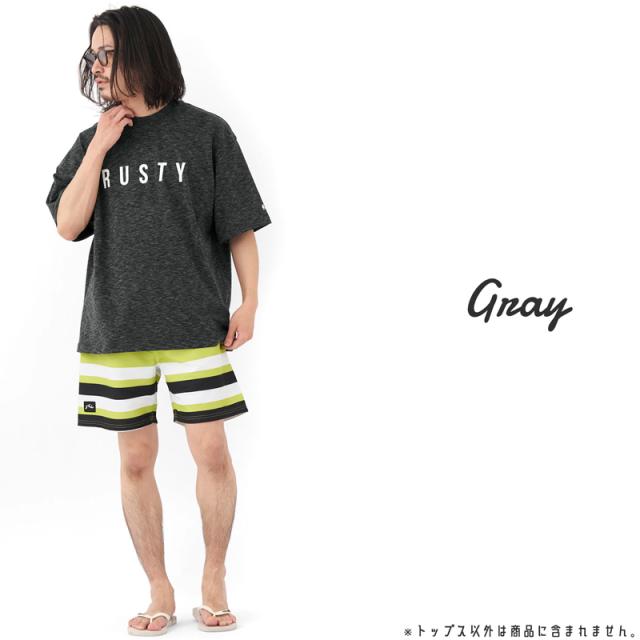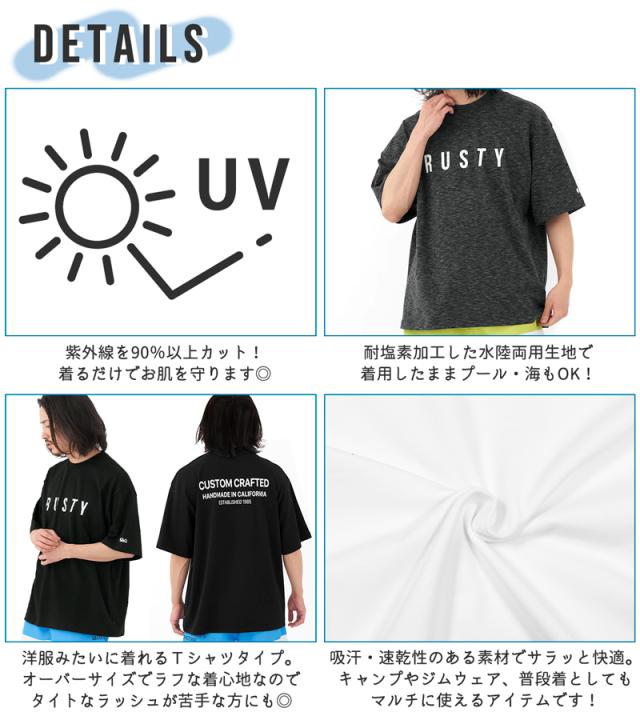 ラスティ メンズ 半袖 ラッシュ トップス ラッシュガード Tシャツ 紫外線 UV カット ゆったり 《レビュー記入でメール便無料》 ビッグシルエット 速乾 吸汗 耐塩素 水陸両用 シンプル 無地 ロゴ M L XL 海 旅行 キャンプ 913505 : RUSTY 送料無料