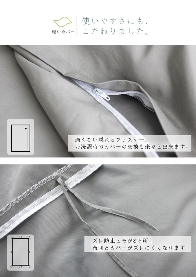 - 肌触りが良く、防ダニ効果もあり、ファスナーのつまみが大きくて開け閉めする時生地が絡まなくストレス無くとても良いです。