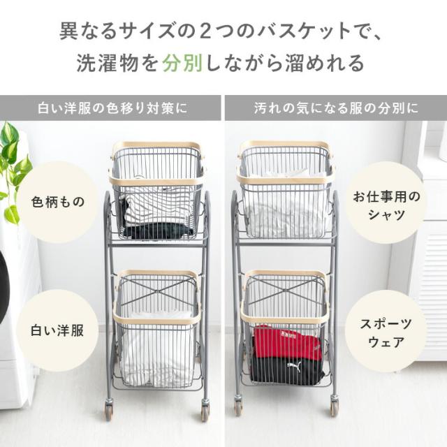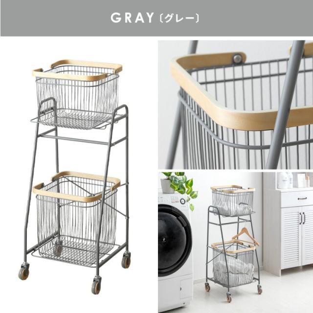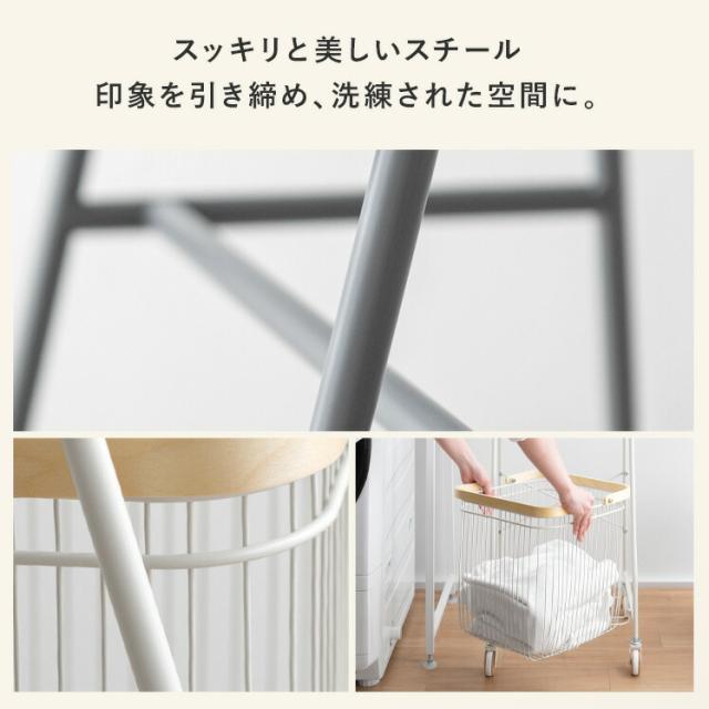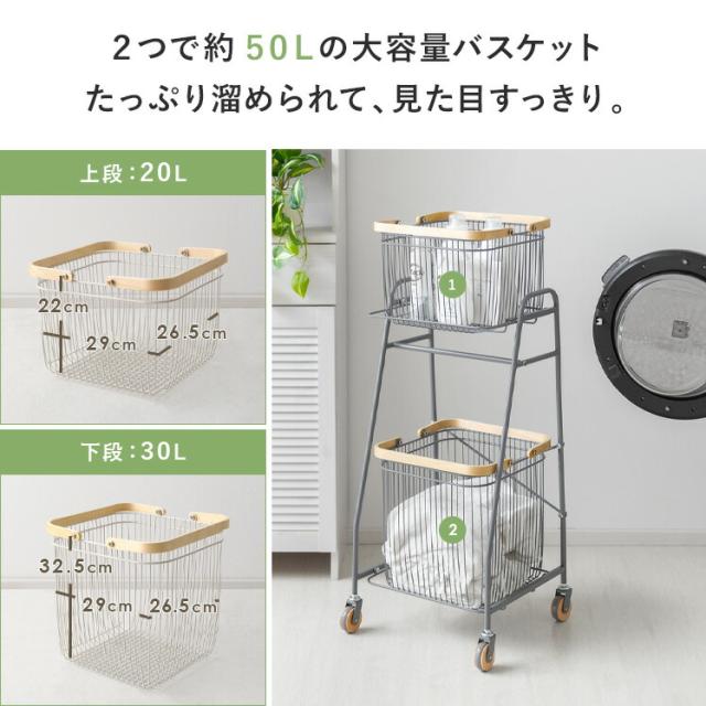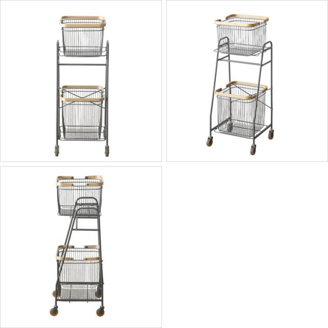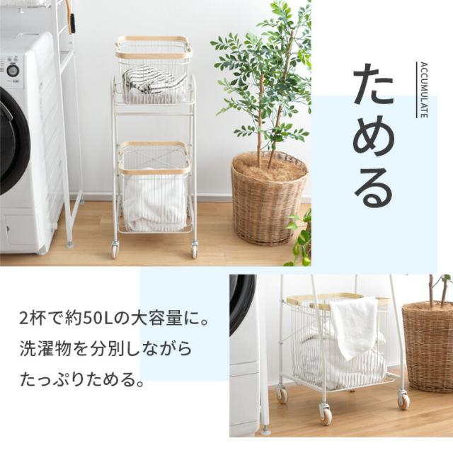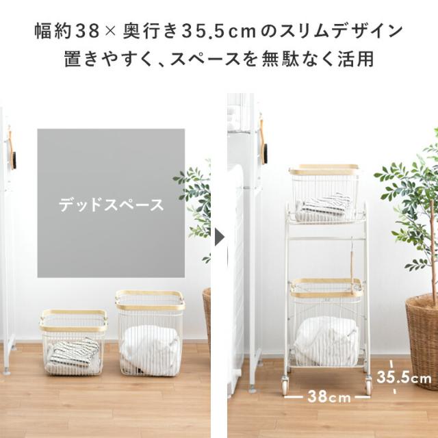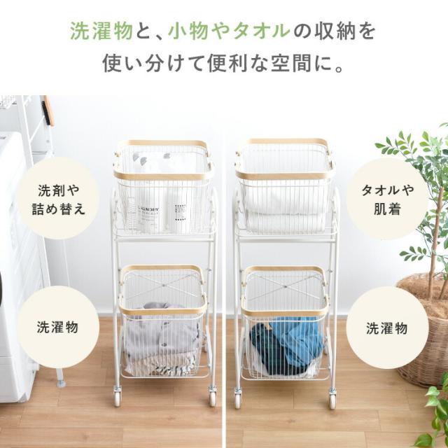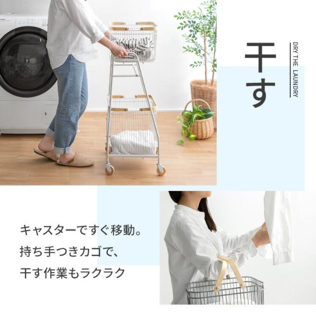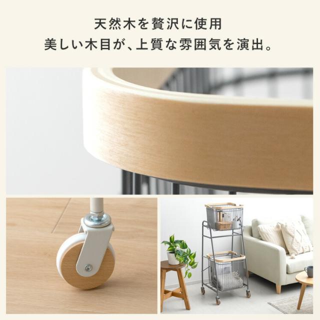 ワゴン バスケット キャリー ランドリーワゴン おしゃれ かわいい 北欧 シンプル ナチュラル 収納 収納ワゴン 洗濯ワゴン 洗濯 天然木 2段 スリム カゴ