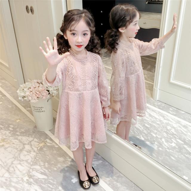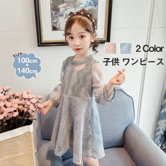 ワンピース チュニック レディース 子供服 春服 ドレス レース付き キッズ 結婚式 発表会 卒園式 水色 フォーマル 長袖 おし