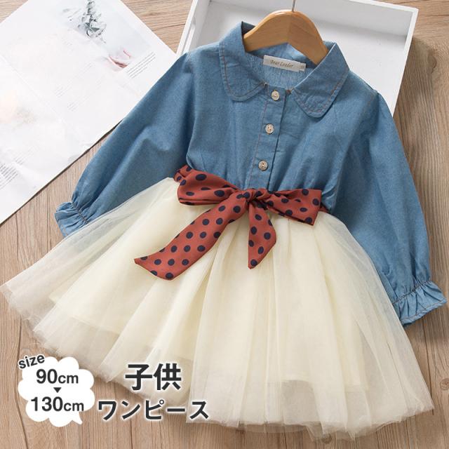 ワンピース チュニック レディース 子供服 春服 キッズ シャツワンピース 女の子 ベビー 可愛い リボン デニムスカート 演奏会