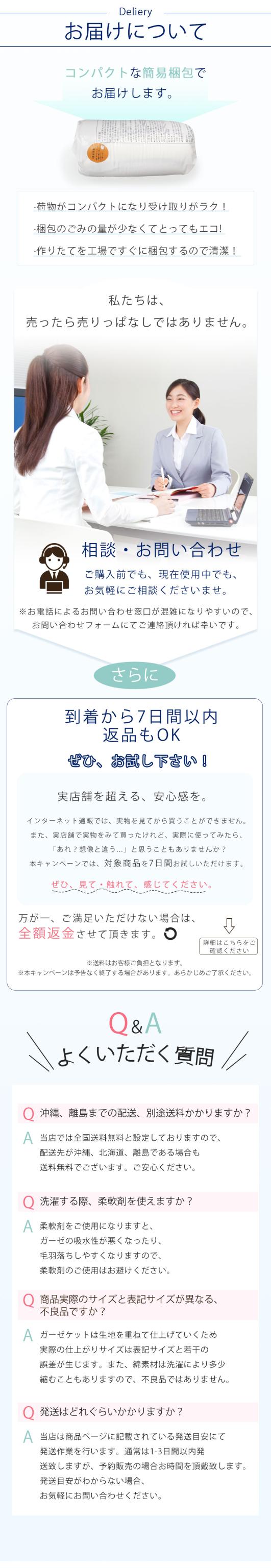 お届けについて:お届けの時はよりコンパクト圧縮梱包でお届けします。開封後そのままご使用いただくこともできますが、一度陰干ししていただくとボリュームが戻り、より快適にご使用いただけます。