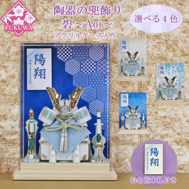五月人形 兜飾り コンパクト おしゃれ モダン ケース飾り (碧〜Aoi〜兜 ブルー アクリル ケース入り お名前木札付き YA5787-KS-20)端午の節句 初節句 5月人形