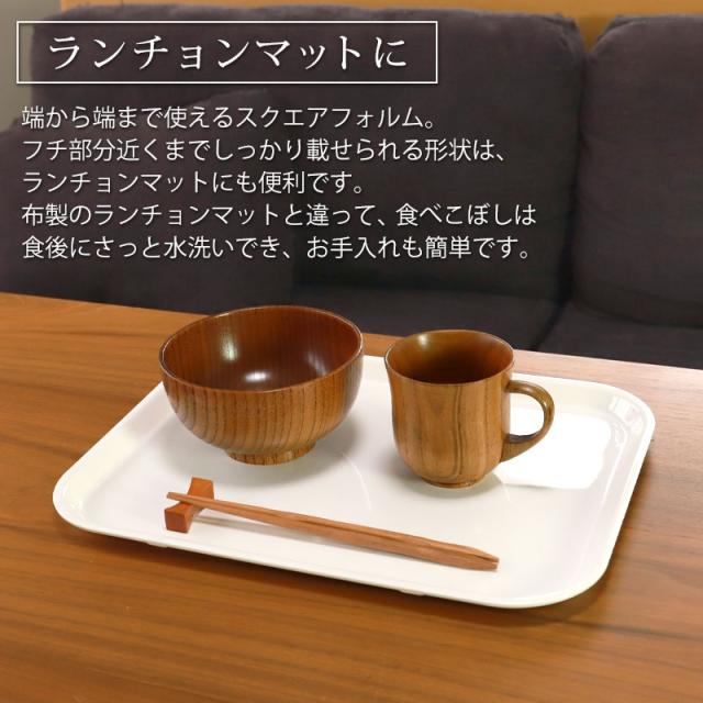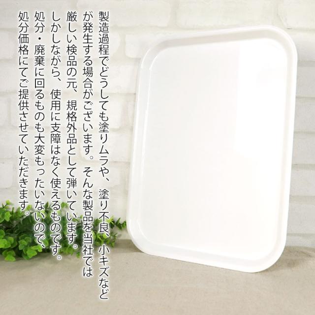 | 商品説明 | 製造過程でどうしても塗りムラや、塗り不良、小キズなどが発生する場合がございます。 そんな製品を当社では厳しい検品の元、規格外品として弾いています。 しかしながら、使用に支障はなく使えるものです。 処分・廃棄に回るものも大変もったいないので、処分価格にてご提供させていただきます。 お求めやすい小ロットの10枚セット送料無料です。 S・M・Lの3サイズのサイズ展開がございます。 乱雑に扱われやすい業務用に気兼ねなくお使いください。 もちろんご家庭での便利なお盆としても最適です。 今までなら泣く泣く破棄せざるを得なかった製品を有効活用することでSDGsに貢献します。 すべり止め加工で持ち運びも安心です。 トレーの表面に食器をのせてもすべりにくい特殊塗装を施しています。 食器がすべりにくく、お子様やご高齢の方が使用しても安心です。 運ぶだけがトレーの役割ではありません。 端から端まで使えるスクエアフォルム。 だから、そのままランチョンマットとしても使えます。 フチ部分近くまでしっかり載せられる形状は、ランチョンマットにも便利です。 布製のランチョンマットと違って、食べこぼしは食後にさっと水洗いでき、お手入れも簡単です。 耐久性にも優れ、飲食店などを営まれている方にも大変好評を頂いております。 レストランや料理店、介護施設、保育所などで幅広く業務用として利用されています。 スタッキング性にも優れていますので、重ねてコンパクトに収納できます。 衛生的なホワイト無地のノンスリップトレーは、紀州漆器の塗り職人がひとつひとつ塗り上げています。 日本製(和歌山県) 三好漆器オリジナル製品 紀州塗り(紀州漆器)は室町時代の始まりであると伝えられています。 その塗物技法は優れた漆工たちに引き継がれて、昭和53年に通産省より伝統的工芸品の指定を受けております。 美しく、丈夫で使いやすい『ぬりもの』としてご愛用を頂いております。どうか麗しいぬりもののよさを充分味わって下さい。 |