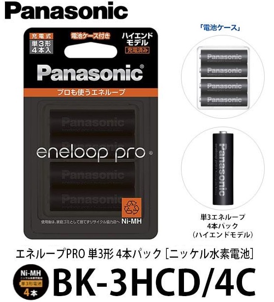 単3形充電池 パナソニック 単3充電池 4本パック エネループPRO 充電池 ハイエンドモデル 電池ケース付き BK-3HCD/4C 防災電池 ニッケル水素充電池 大容量 エネループプロ