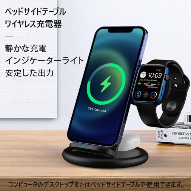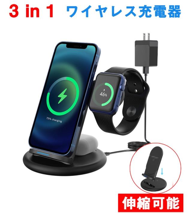 当日発送 ワイヤレス充電器 3in1 15w スタンド iphone13 12 11 急速充電 ワイヤレスチャージ Qiワイヤレス充電器 Qi充電器 エアポッズ アップルウォッチ