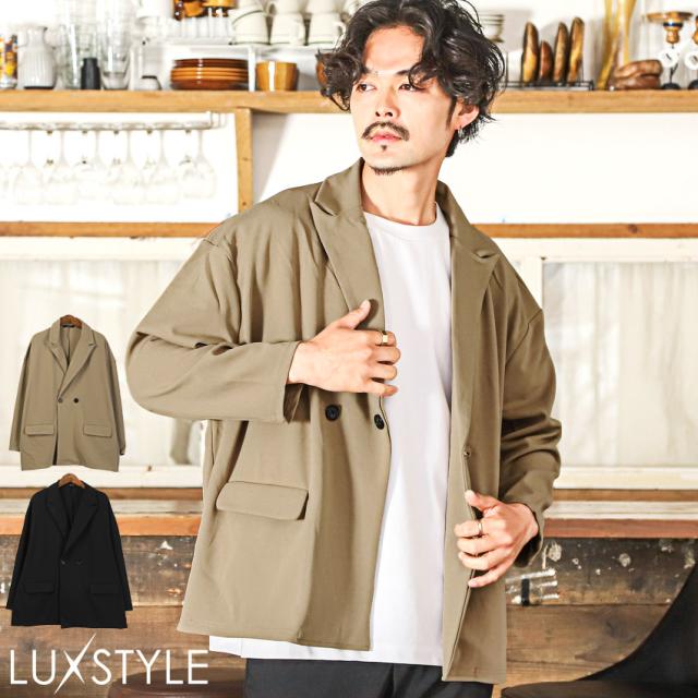 春新作 テーラードジャケット メンズ ダブルテーラード ストレッチ 大きめ 春夏【薄梨地ルーズダブルテーラードジャケット】 aa-2391