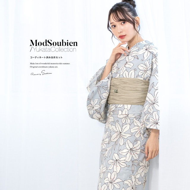 こちらの商品は、浴衣・帯・下駄の3点セットです。セット内容の一部変更や、それに伴う値引きは承っておりません。