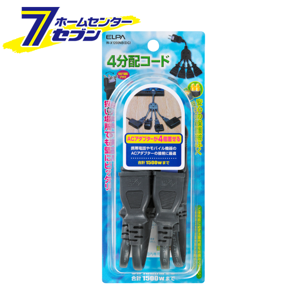 「4分配コード ダークグレー W-X1200NB(DG) エルパ」はホームセンターセブンが販売しております。