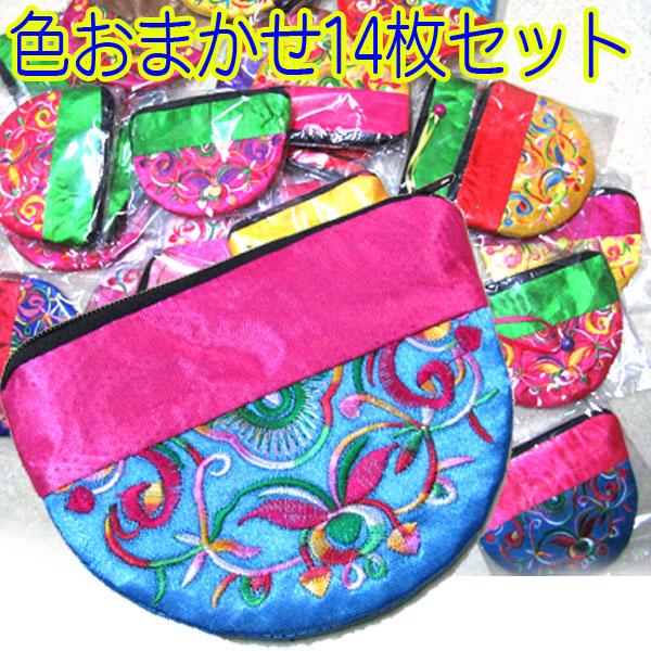 【おまかせ14個セット】鈴付き刺繍 半月小銭入れ【KP】 ネコポス便なら【送料無料】|小銭入れ,小物,いれ,財布,チャイナ,グッズ,中国,中華街,レトロ,雑貨,,昭和,アイテム民芸品