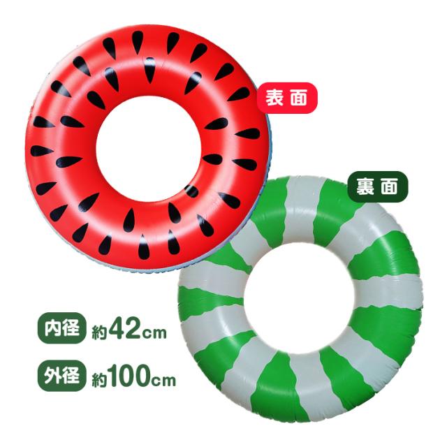 大人がゆったり使用できるビックサイズのスイカ柄浮き輪です。