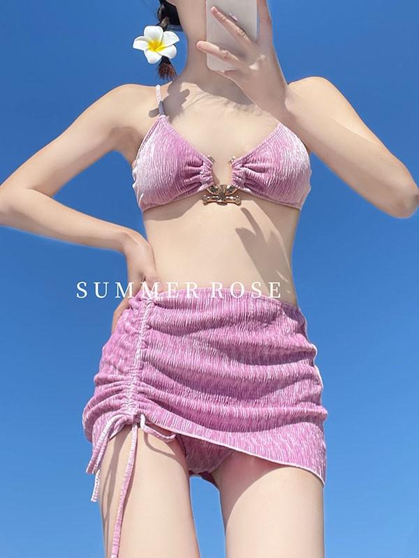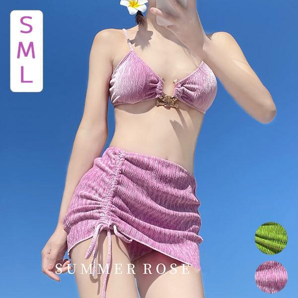 【レビュー投稿で+5%還元】レディース 水着 ビキニ スカート パッド付 かわいい オトナ女子 セクシー 小胸 ピンク 緑 グリーン 夏 海 ビーチ プール 温泉旅行 S M L dm151t2