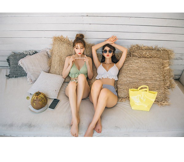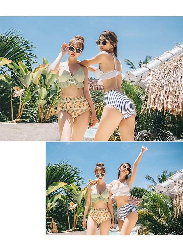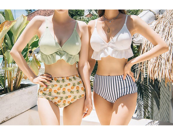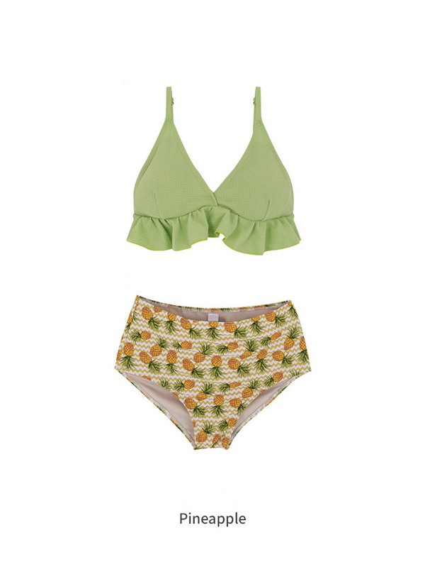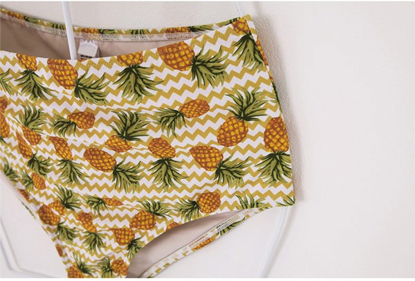 【レビュー投稿で+5%還元】水着 レディース ビキニ 上下セット 小胸 セクシー 可愛い パンツ付き パイナップル柄 ストラップ 着痩せ パッド付 かわいい 女性 海水浴 温泉 韓国風 ホワイト グリーン df013m3