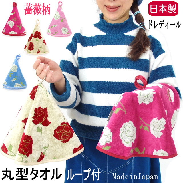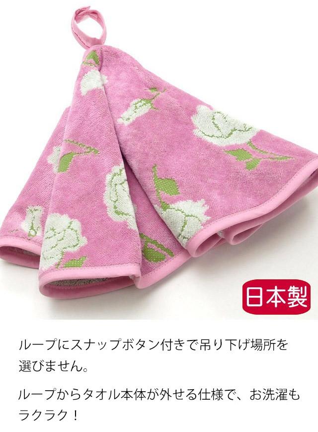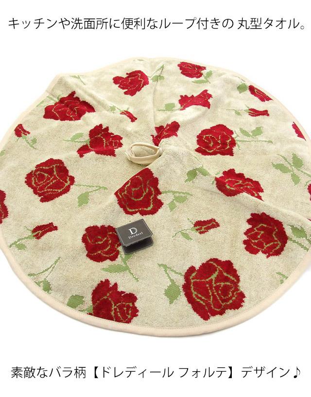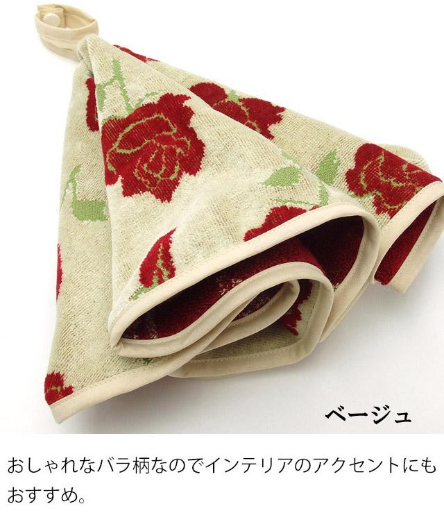 タオル 薔薇 薔薇柄 吊り下げ ループ付き 丸型タオル 円形タオル 姫系 薔薇雑貨 日本製 キッチン かわいい おしゃれ 誕生日