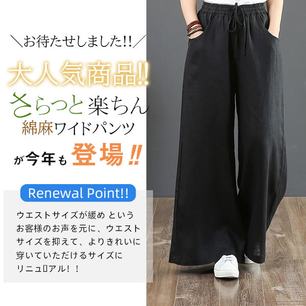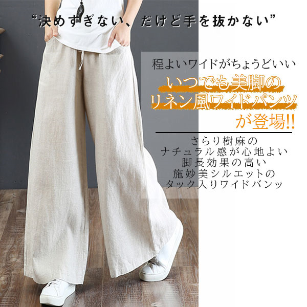 ワイドパンツ レディース チノパン リネン バギーパンツ ガウチョパンツ ズボン ロング ワイドパンツルック 綿麻 大きいサイズ リラックス 美脚