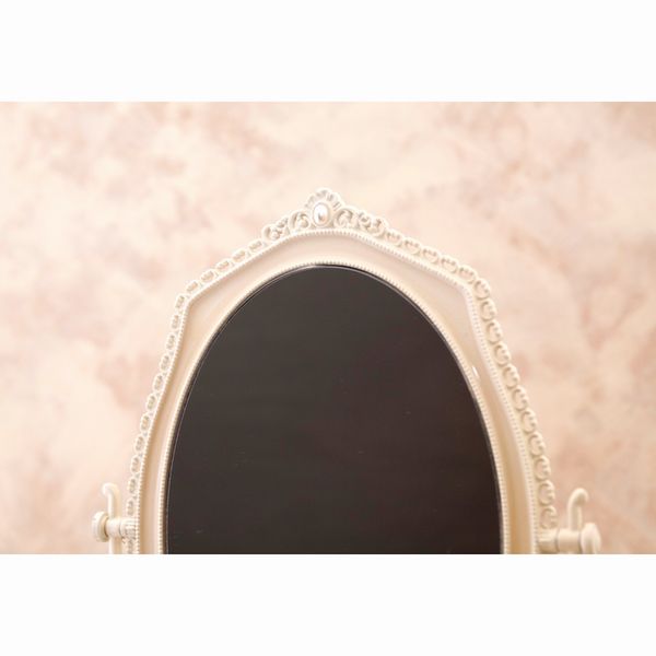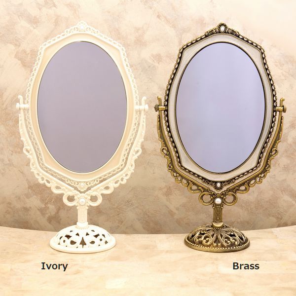 | 上品で落ち着きのあるアルテミス スタンドミラーです。細かなデザインが魅力的な両面ミラーです。 ウラとオモテで少し異なるデザインがオシャレですね。 ミラーの下部分の輪っかは引っ掛けタイプでアクセサリーなどを飾ることができます。 |