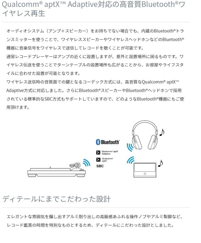 ●Bluetooth(R)対応コーデック Qualcomm(R) aptX、Qualcomm(R) aptX Adaptive、SBC