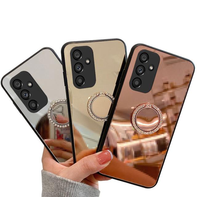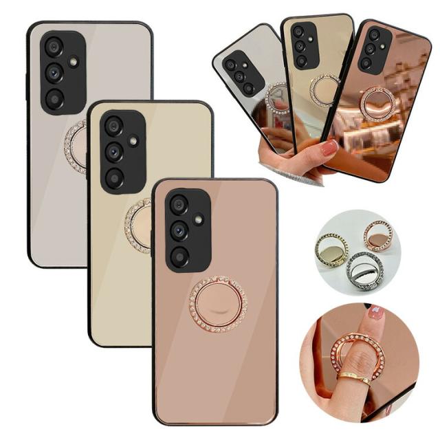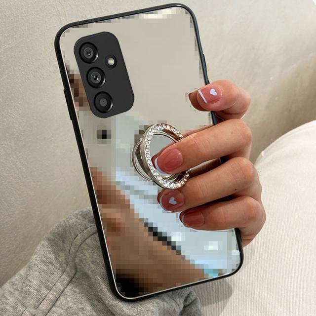Samsung Galaxy A54 5G ケース カバー 背面ミラー 鏡面 ケース/カバー スタンド機能 ストラップ穴 後付け リング付き 可愛い/かわいい ラインストーン キラキラ おしゃれ レディース サムスン ギャラクシー A54 5G おすすめ スマートフォン/スマホケース/カバー