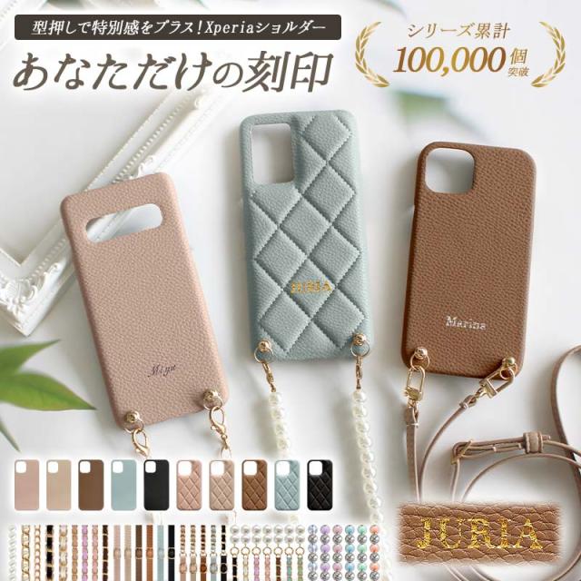 スマホケース スマホカバー Xperia ケース【レザーハードorキルティングケース×型押し名入れ×ロングストラップ】スマホショルダー ショルダー タイプ ストラップ くすみ ギフト 刻印 名入れ無料 メール便送料無料 受注生産