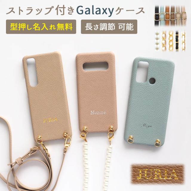 スマホケース スマホカバー Galaxy ケース【レザーハードケース×型押し名入れ×選べるロングストラップ】スマホショルダー ショルダー タイプ ストラップ ギャラクシー カバー 肩掛け 名入れ無料 メール便送料無料 受注生産