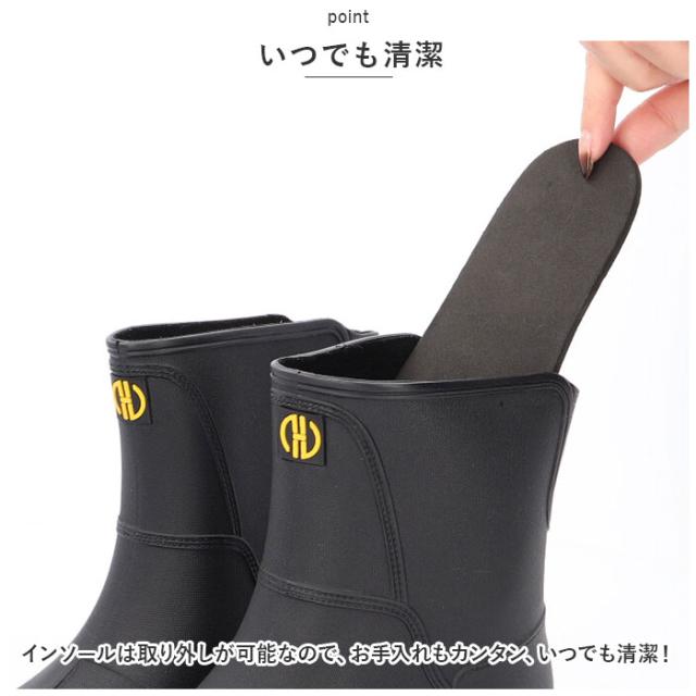 | 商品説明 | ・アウトドアからタウンユースまで幅広いシーンで活躍!「レインブーツ ミドル丈」が登場! 【幅広いシーンで活躍】 ・しっかりした作りなので雨の日はもちろん、アウトドアや現場作業、タウンユースにも◎幅広いシーンで使える! 【動きやすい】 ・ふくらはぎまでのミドル丈なので、動きやすさもGOOD!ソール部分は屈曲性があるので足にフィットし歩きやすい! 【滑りにくい】 ・靴底は滑りにくい仕様になっているので、雨の日の地面でも滑りにくく安心◎ 【いつでも清潔】 ・インソールは取り外しが可能なので、お手入れもカンタン、いつでも清潔! 【デザイン性◎】 ・シンプルだけどおしゃれ!正面のロゴデザインとスタイリッシュなカラー配置で雨の日だっておしゃれに決まる☆ |