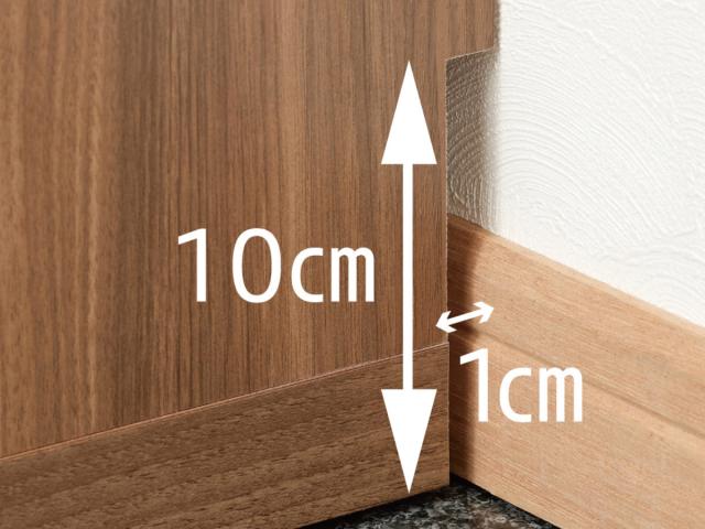 ●巾木よけ加工付きなので壁にぴったり設置できます。